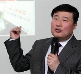 [이데일리 김현아 기자] 지난달 27일부터 단독 영업중인 KT(030200)에 이동통신 가입자가 몰리자 불법 보조금 살포의혹이 일고 있다. 이를 의식한 KT에서는 임헌문 KT 마케팅부문장 (사진)이 12일 기자설명회를 열고 KT의 선전은 '눈물 젖은 빵'으로 대표되는 직원들의 결의와 유통 경쟁력확대 덕분이라고 밝혔다.