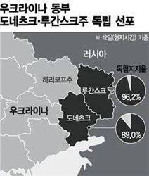 [아시아경제 조목인 기자] 주민투표로 민심을 확인한 우크라이나 동부 도네츠크주(州)와 루간스크주가 12일(현지시간) 중앙정부로부터 독립을 선언했다.