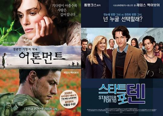 한편 제임스 맥어보이는 오는 5월 22일 개봉 예정인 영화 '엑스맨: 데이즈 오브 퓨처 패스트'에 출연한다. (사진=영화 '어톤먼트', '스타트 포 텐' 포스터)