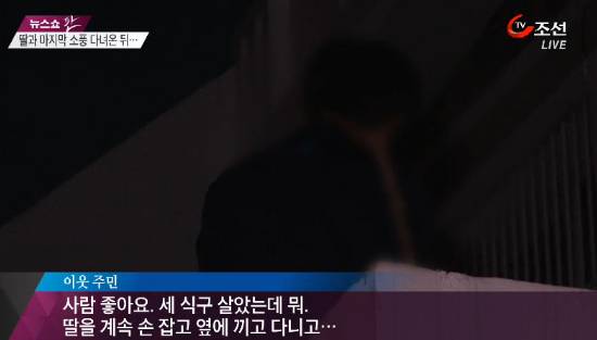 "사람 좋아요. 세 식구 살았는데 뭐 딸을 손잡고 옆에 끼고 다니고"