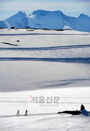 더 놀라운 건 설원 위에서 노르딕 스키를 즐기는 사람들이다. 거대한 산군들에 견줘 개미보다 작은 사람들이 광활한 설원을 부지런히 오가고 있다. 웃통 드러내고 볕을 쬐는 남자들은 예사고, 핫팬츠에 탱크톱 차림으로 스키를 즐기는 여성도 곧잘 눈에 띄었다. 스키(Ski)의 어원을 거슬러 올라가면 스칸디나비아어 '작은 나무판자'에 이른다던가. 그만큼 스키가 노르웨이 사람들의 삶과 밀접한 관련을 맺고 있다는 걸 여실히 드러내는 장면이다.