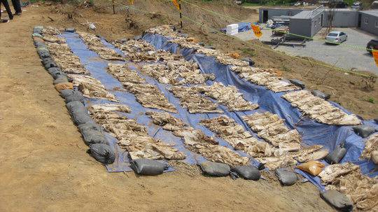 발견 당시 유골들은 비닐에 25구 정도씩 묶여 싸여 있었던 것으로 알려졌습니다.