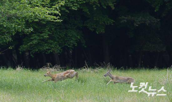 검찰이 지난 16일 유병언 전 세모그룹 회장에 대해 사전구속영장을 청구한 가운데 18일 오전 경기 안성시 보개면 금수원(기독교복음침례회 안성교회)이 언론에 공개되고 있다. 사진은 유 회장이 사진을 찍었던 장소에서의 고라니 모습.jordanh@cbs.co.kr