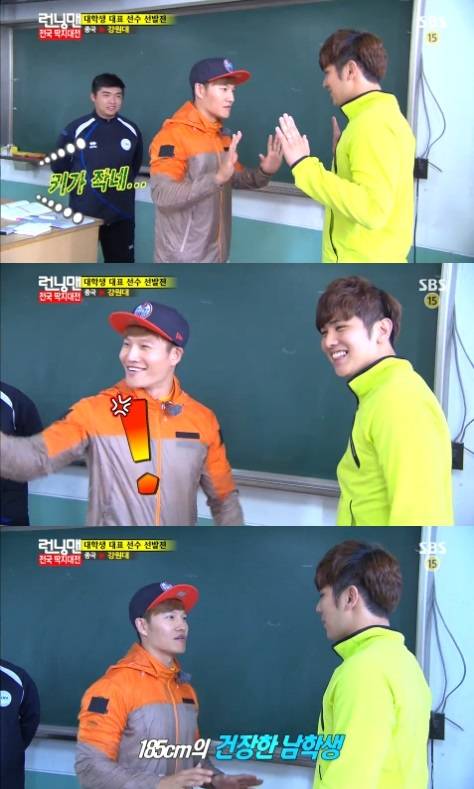 '런닝맨' 김종국, 키 185cm 건장한 남학생에 키굴욕 '발끈'