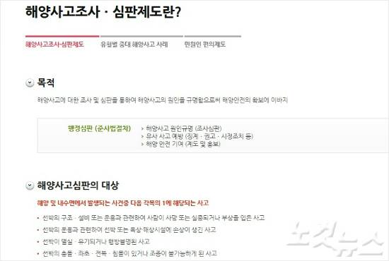 문제는 현행 '해양사고 조사 및 심판에 관한 법률'이 선박 사고의 원인 조사를 해양수산부 산하 해양안전심판원이 맡도록 규정하고 있다는 점이다.
