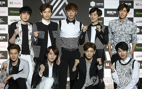 (서울=연합뉴스) 양지웅 기자 = 그룹 제국의 아이들이 3일 오후 서울 능동 어린이대공원 돔아트홀에서 미니앨범 'First Homme' 발매 기념 쇼케이스에서 포즈를 취하고 있다. 2014.6.3