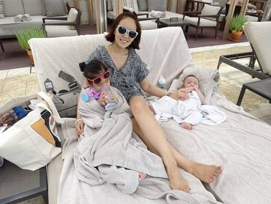 박지윤은 8일 자신의 인스타그램에 5살 맏딸과 생후 4개월 둘째 아들과 함께한 수영장 나들이 사진을 공개했다.