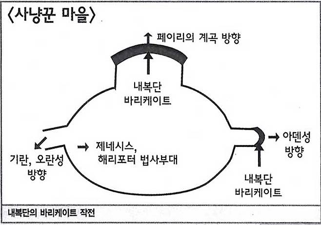 ▲ 이날 전투의 클라이맥스를 장식했던 사냥꾼 마을 방어전. 사냥꾼 마을에 집결한 DK를 막는 것은 거대한 내복단의 바리케이드였다(피시파워진 참조) |