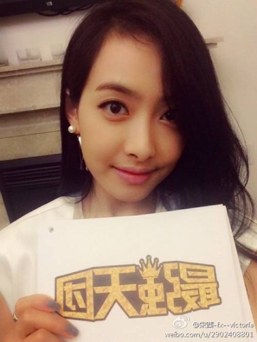 게재한 사진 속 빅토리아는 '최강천단(最强天团)'이라는 글씨가 쓰여진 큐카드를 들고 미소 짓고 있다. 특히 빅토리아는 큰 눈망울과 한층 물오른 미모와 성숙된 분위기를 뽐내며 팬들의 시선을 끌었다.