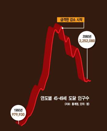 실제로 통계청의 장래인구추계에 따르면 국내 45~49세 인구수는 2018년 436만2679명으로 정점에 이른 후 꾸준히 감소하게 된다.