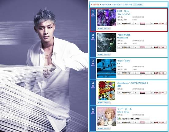 [OSEN=임승미 기자] 가수 김현중이 일본에서 발매한 새 싱글 '핫 선(HOT SUN)'이 오리콘 데일리 차트 1위에 오르며 한류대세를 입증했다.