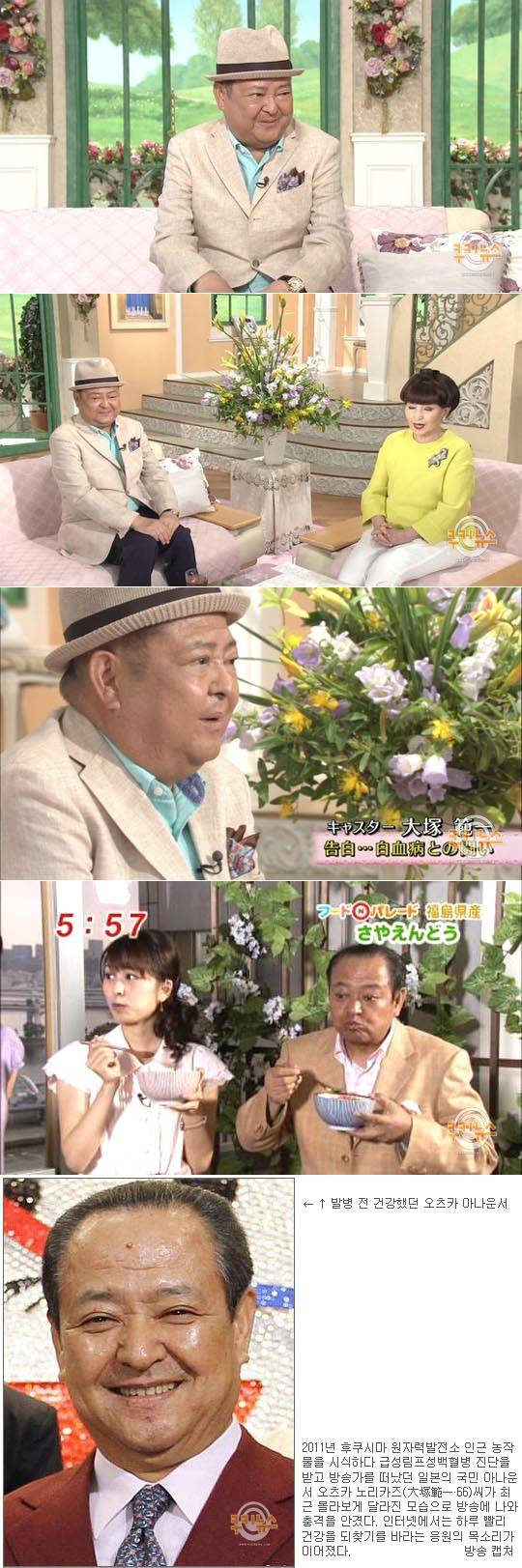 2011년 후쿠시마 원자력발전소 인근 농작물을 시식하다 급성림프성백혈병 진단을 받고 방송가를 떠났던 일본의 국민 아나운서 오츠카 노리카즈(大塚範一·66)씨가 최근 몰라보게 달라진 모습으로 방송에 나와 충격을 안겼다. 인터넷에서는 하루 빨리 건강을 되찾기를 바라는 응원의 목소리가 이어졌다.