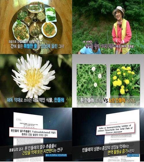 이에 대해 한 전문가는 "민들레 잎은 한의학에서 강장제, 건위제 등으로 뿌리는 해열과 이뇨, 거담, 해독제로 사용하며 진액이나 즙을 복용하는 경우가 많다"면서 "전통적으로는 여성들의 유선염, 유방암에 많이 사용했던 약이다"라고 설명한 것으로 전해졌다.