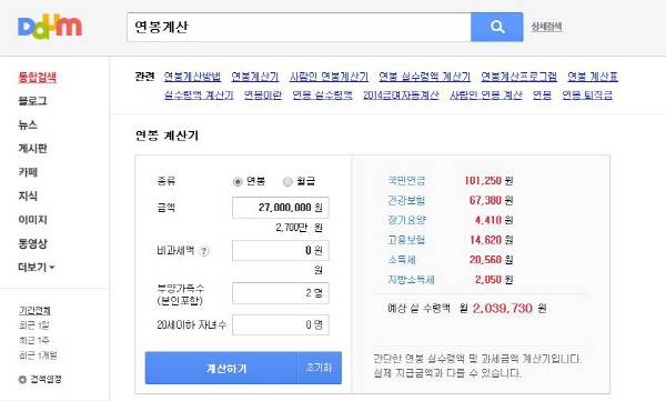 월급 실수령액부터 복부 비만도까지..다음, 편리한 계산서비스 오픈