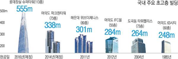 지하는 3층까지지만 그 밑으로 60m 깊이까지 파일 3500개를 빼곡하게 박아 기초를 다졌다. 곳곳에 설치된 29개 엘리베이터의 평균 속도는 분당 420m. 1층에서 65층 전망대까지 올라가는 데 멈추지 않고 가면 1분이 채 걸리지 않는다. 최근 소방훈련 때 건장한 소방대원이 걸어서 올라가는 데 35분이 걸렸다.