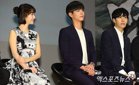 [엑스포츠뉴스=권태완 기자] 11일 오후 서울 회기동 경희대 평화의 전당에서 열린 영화 '명량' 쇼케이스에 이정현, 박보검, 노민우(왼쪽부터)가 인터뷰를 하고 있다.