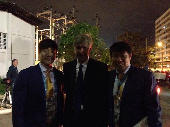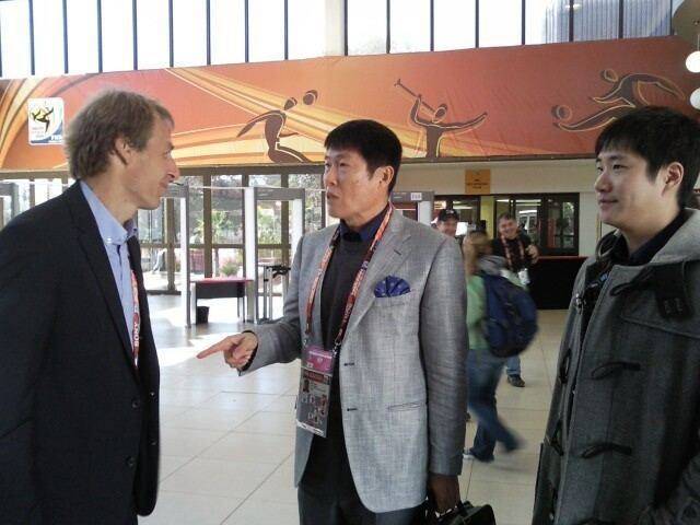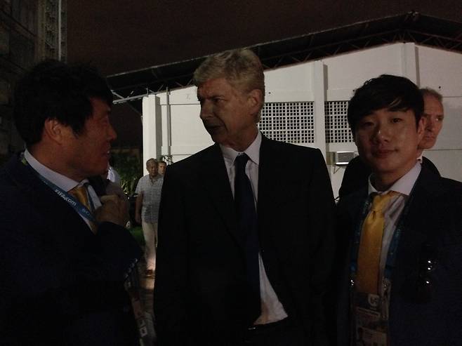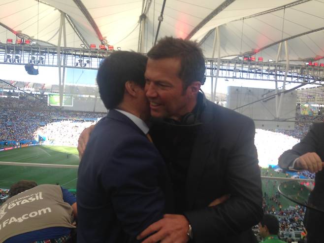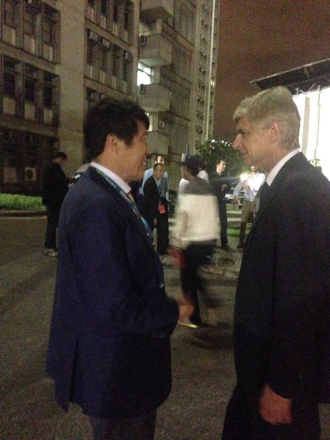 2010 남아공 월드컵 때 차붐과 클린스만의 위엄 넘치는 사진을 아래처럼 망가뜨린 경험이 있어서 벵거 감독과 차붐의 투샷을 충분히 찍은 뒤에 합류했습니다.