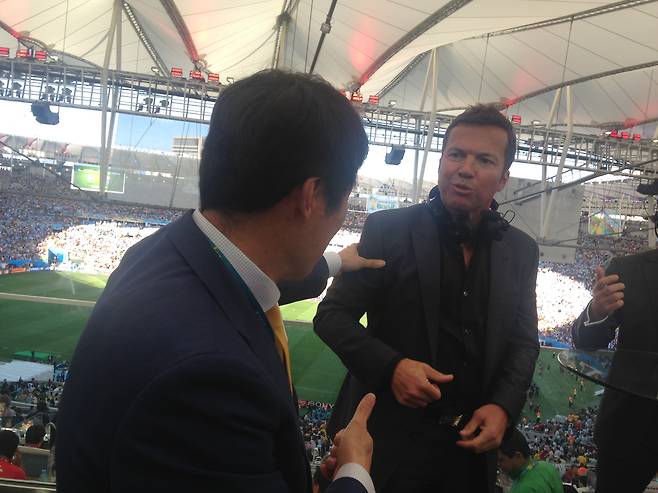 브라질 월드컵에서 한국의 성적이 부진해서 침통한 분위기지만 분데스리가 영웅은 독일의 선전과 함께 신명이 났습니다. 오프닝때부터 목소리가 엄청 갈라지면서 흥분을 감추지 못했습니다. (해설 내용은 매우 공명정대했습니다)
