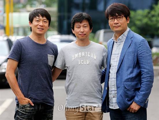 | ▲ KBS대하드라마 < 정도전 > 의 이재훈 PD와 강병택 PD, 정현민 작가가 5일 오후 서울 여의도에서 포즈를 취하고 있다. |