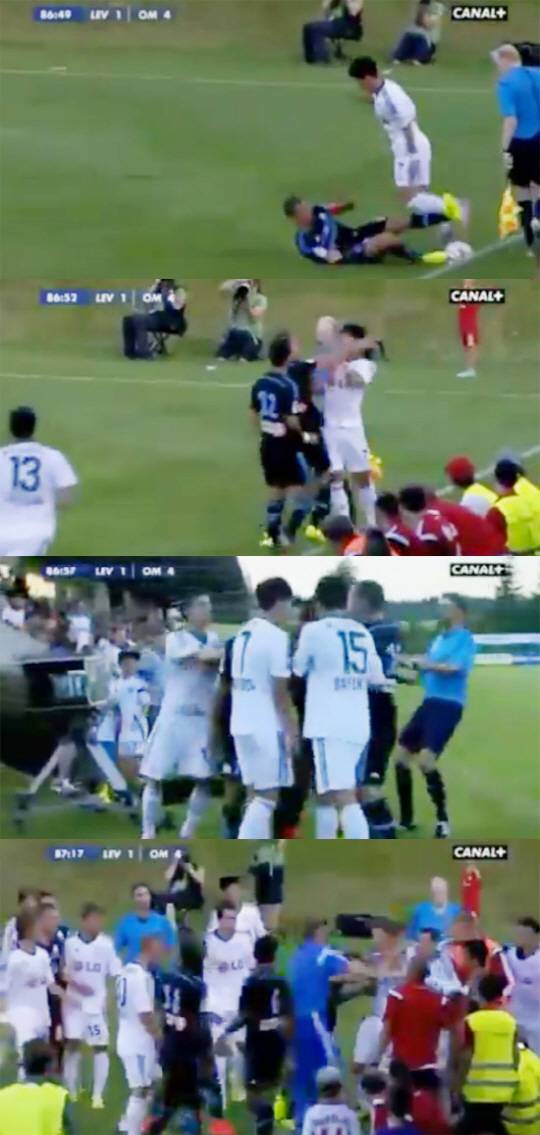 신경전은 후반 42분에 벌어졌다. 손흥민이 오른쪽 측면에서 스로인 패스를 받는 순간 마르세유 수비수 베누아 셰이루(33,프랑스)의 거친 태클이 들어왔다. 스터드가 보일 정도의 높고 깊은 태클이었다.