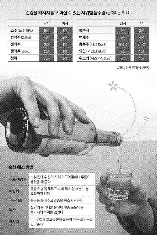 조상도 즐긴 술이지만 마시면 금방 취하는 '몹쓸 술' 또한 폭탄주다. 흡수가 가장 잘 되는 알코올 도수는 10~12도인데, 이게 딱 폭탄주의 도수다. 먹기 편해 많이 마시고, 그만큼 숙취도 심해 몸이 빨리 상한다.