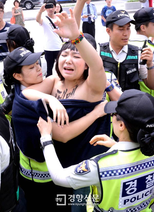 - [경향포토]연행되는 세월호 특별법제정 촉구 토플리스(topless,반라)시위