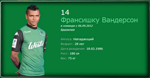 독일 축구정보사이트 '트란스퍼 마르크트'를 보면 반데르송은 2013-14시즌 러시아프로축구에서 33경기 12골 9도움을 기록했다. 경기당 83.3분을 뛰었으며 90분당 공격포인트는 0.69다. 러시아축구협회 선정 러시아프로축구 우수 33인에도 포함됐다.