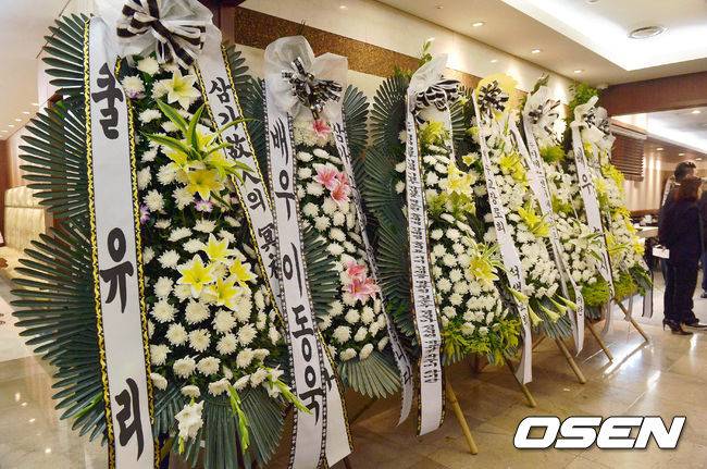 故 유채영의 쿨 시절 멤버 유리의 조화가 빈소를 지키고 있다./photo@osen.co.kr