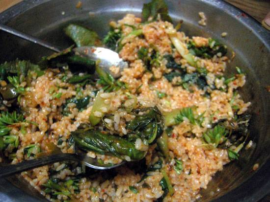 비비고 둘러 쓱쓱 먹는 게 보리밥이다. 뿐이랴 산채원에 있는 온갖 산나물을 곁들이면 별미가 아니라 진미다. 진짜 세상에 있는 밥 중에 이보다 좋은 게 뭐가 있을까.
