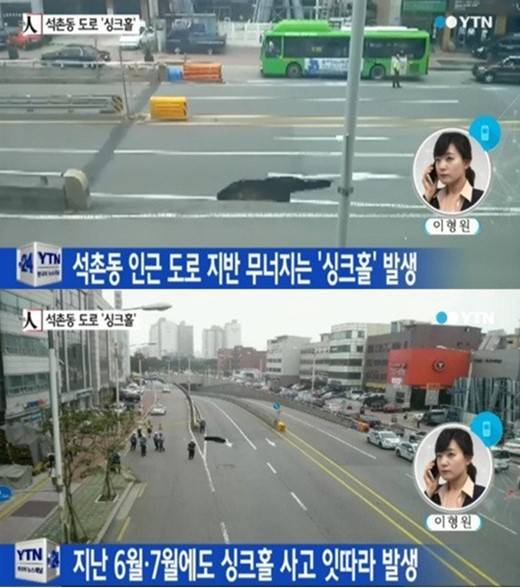 석촌동 싱크홀 발생에 누리꾼들은 "석촌동 싱크홀 발생, 원인이 뭔지 정말 궁금하다" "석촌동 싱크홀 발생, 인명 피해가 없어서 다행이네요" "석촌동 싱크홀 발생, 진짜 무섭다" "석촌동 싱크홀 발생, 영화에서나 볼 법한 일이 현실로 나타나다니" 등의 반응을 보였다. (사진출처: YTN 뉴스 방송 캡처)