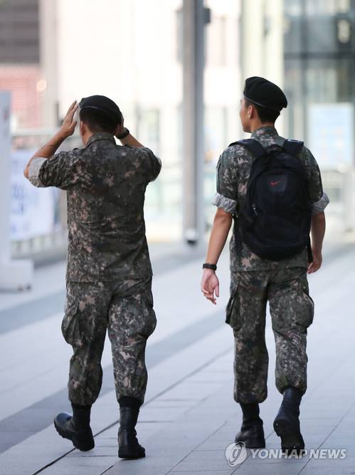 외출·외박을 나온 장병은 하나같이 딱딱하게 굳은 표정과 자세로 옷차림 등에 신경 쓰는 모습이었다.