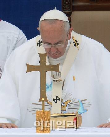 [교황방한] 교황 '노란리본' 달고 미사 집전