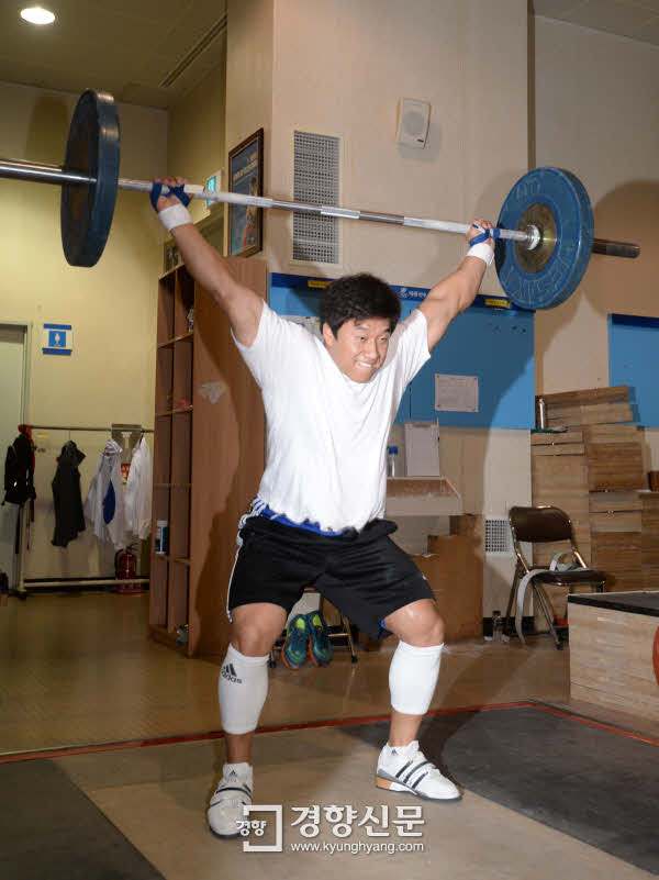 역도 국가대표 사재혁이 2014 인천아시아경기대회 개막을 30일 앞둔 20일 서울 공릉동 태릉선수촌에서 맹훈련하고 있다.