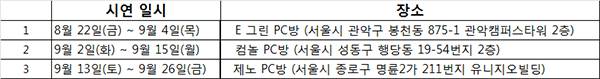 이번 행사는 기존 온라인 게임 유저들에게 PS4용 게임 시연기회를 제공하기 위해 마련됐으며, 8월 22일부터 관악구 E 그린 PC방을 시작으로 성동구 컴놀 PC방, 종로구 제노PC방에서 순차적으로 시연장이 열린다. & #160;