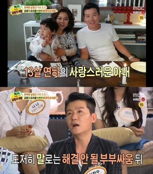 이현우는 "부부싸움을 했는데 말로 풀어지지 않는 상황이 있잖나. 그럴 때 부엌에서 요리를 하고 있으면 100% 풀어진다"고 말했다.