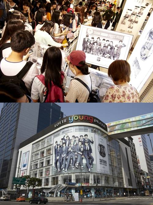 SM엔터테인먼트(이하 'SM) 역시 SM타운 팝업스토어를 운영 중이다. SM타운 팝업스토어에서는 YG와 마찬가지로 다양한 종류의 굿즈를 팔고 있다. 특이한 것은 여러 가지의 굿즈를 넣어 내용물을 알 수 없게 밀봉해 파는 럭키 백이 있다는 점이다. 또 인천공항에도 팝업스토어를 운영해 입·출국하는 한류 팬들과 해외스케줄을 떠나는 아이돌을 보기 위해 공항을 찾은 팬들이 이용하기 쉽도록 하고 있다.