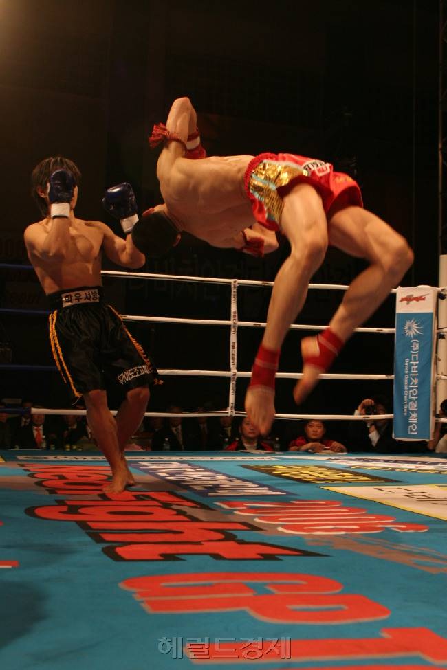 ▶2위: UFC 앤서니 페티스의 삼각차기=다른 곳을 향해 점프한 뒤 상대를 향해 다시 방향을 바꿔 발로 차는 공격을 삼각차기라고 한다. 자신과 2차 점프지점, 상대를 이으면 삼각형이 되므로 삼각차기다. 극진공수도 창시자 고 최영의 선생이 이 삼각차기로 미국의 프로레슬러 레드스콜피온 톰 라이스를 꺾었다고 알려져 있다. 공격 방향이 정면이 아닌 측면이 되므로 공중에서 이뤄지는 킥은 자연스레 상대의 후두부 쪽을 노리게 된다. 가장 최근 이 공격을 실전에서 사용해 성공한 이는 앤서니 페티스다. 김치 파이터 벤슨 헨더슨은 거리를 충분히 벌린 것으로 착각해 잠시 방심하다 이 공격을 안면에 허용하고 넉다운 당했다. 관중과 데이너 화이트 UFC 대표는 놀라운 이 기술이 성공하자 믿을 수 없다는 듯이 환호했고, 반면 헨더슨은 좀체 등장하지 않는 기술의 희생양이 되는 굴욕을 당했다. ▶1위: 네오파이트 김종만 백플립 킥=백플립 킥은 뒤로 공중을 돌면서 킥을 하는 기술로, 이를 구사하는 데는 엄청난 탄력이 필요하다. 구사할 수 있는 선수는 극소수일 수 밖에 없을 터이며, 실제 이를 경기에 쓰려는 시도 자체가 거의 없는 기술이다. 태권도 시범단에서 하일라이트로 보여주거나, 만화에서나 등장하는 기술로만 여겨지는 게 현실이다. 그런데 실제로 그 공격을 시도한 선수가 있다. 수년 전 종합격투기 대회인 네오파이트의 입식타격 부문 경기에서다. 주인공은 그 전까지 메이저 격투기대회에 거의 알려져 있지 않았으나 재야의 고수로 이름 높았던 김종만이다. 종합격투기 선수 김종만이 아니다. 라이트급인 그는 70kg급인 리영철을 상대로 이 기술을 시도했다. 어찌나 탄력이 좋았던지 거의 도움닫기 없이 노스텝으로 몸을 틀면서 점프해 뒤로 돌면서 올려차기를 했다. 하늘 높이 솟은 그의 발은 농구골대를 뛰어넘을 정도의 높이만큼 올라가 있었다. 몸이 뒤집혀 있으니 위에서 아래로 내려찍는 형태가 된다. 리영철은 이 기술을 가드해내며 위기를 넘겼다. 그 이후로 그런 공격을 시도하는 선수는 나오지 않고 있다.