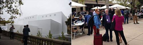 특히 흰색 가건물을 보고선 궁금증이 폭발했는데요. 플린트 센터에서 발표한다는 내용이 알려진 직후 이곳 바로 옆에 흰색 가건물이 세워지고 있다는 외신 보도가 나왔습니다. 그러니 도대체 저것이 무엇일까 하는 궁금증이 곳곳에서 터져나왔지요. 막상 현장에 와보니 흰색 가건물은 규모가 꽤 컸습니다. 출입문은 닫혀 있었습니다.