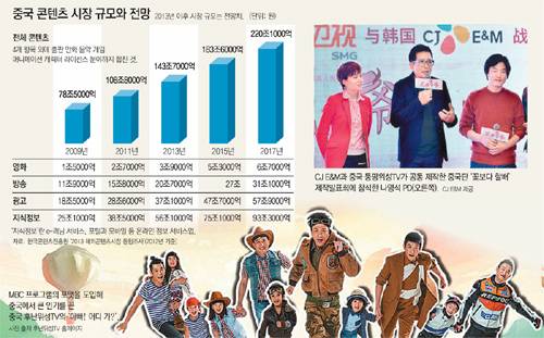 한국 방송 인력의 중국 진출을 바라보는 시각은 엇갈린다. 중국의 방송 시장 규모가 워낙 큰 데다 빠른 성장세를 보이고 있지만 시장의 예측 가능성은 낮아 기회가 큰 만큼 위험도도 높기 때문이다. 한국콘텐츠진흥원에 따르면 지난해 중국의 방송 콘텐츠 시장 규모는 20조 원이 넘는 것으로 추정된다. 한국(6조∼7조 원)보다 3배가량 규모가 크다. 시장분석업체인 PwC가 실제로 집계한 규모도 20조 원대이며 두 기관 모두 앞으로 5년간 두 자릿수 성장세를 보일 것으로 전망했다. 》