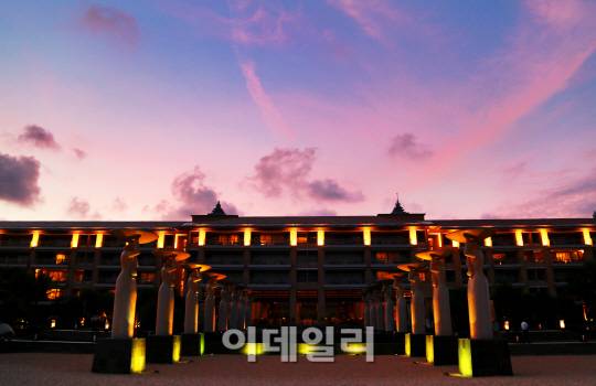 물리아 발리 리조트의 일몰풍경. 물리아 발리 리조트의 은은한 조명과 하늘을 붉게 물든 일몰이 화려함 보다 고풍스러움을 더한다.