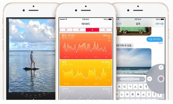 애플은 "찍은 사진을 빠르게 찾고 편집할 수 있다"며 "문자 메시지에 목소리를 넣을 수 있다"고 밝혔다. 이어 "건강과 피트니스 관련 앱이 서로 연동되고 트레이너에게도 건강 정도를 공유할 수 있다"고 덧붙였다.
