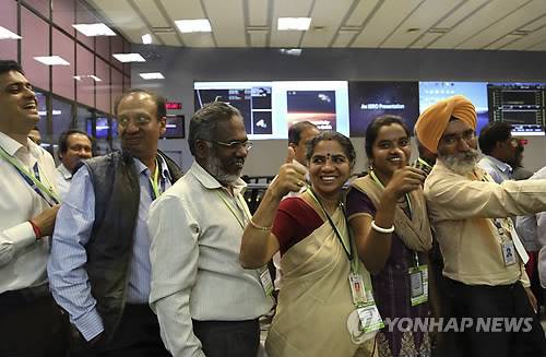 (뉴델리=연합뉴스) 나확진 특파원 = 인도가 처음으로 만든 화성탐사선 '망갈리안'(화성 탐사선을 뜻하는 힌디어)이 화성 궤도 진입에 성공했다고 인도우주개발기구(ISRO)가 24일 오전 8시(현지 시간) 밝혔다.