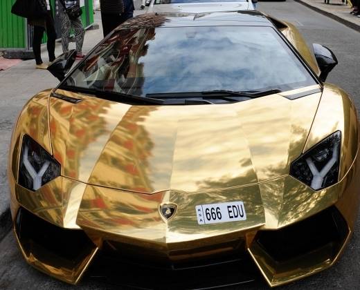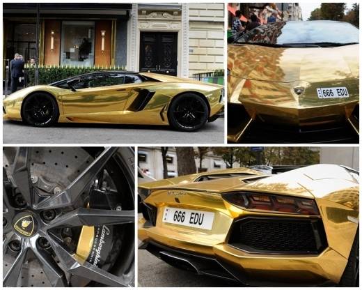 람보르기니 아벤타도르(Lamborghini Aventador)는 이탈리아 최고급 스포츠카 브랜드인 람보르기니에서 공격적인 외형으로 특화돼 2012년 4000대 한정 생산으로 출시된 모델로 기계설계학적으로 가장 완벽한 구조라는 찬사를 받은 바 있다. 참고로 이번 황금 도금 아벤타도르 모델은 1대 가격이 68억원에 달하는 것으로 알려져 있는데 2012년형 람보르기니 아벤타도르(Lamborghini Aventador) 모델과 2014 람보르기니 아벤타도르 로드스터 (2014 Lamborghini Aventador ROADSTER) 모델이 각각 5억~7억 대 가격임을 비교해보면 거의 10배나 차이 난다는 것을 알 수 있다.