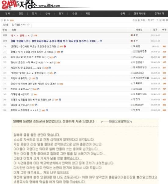 "로린이들" 변태 성욕 일베 초등교사, 경남서 재임용 재직 중