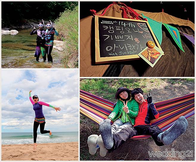 그렇게 해양 스포츠와 캠핑의 매력에 빠지게 된 두 사람은 요즘 캠핑용품 모으는 재미와 새로운 캠핑 장소 찾는 맛에 푹 빠졌다. 캠핑을 하면서 부부 생활에 작은 변화도 생겼다. 캠핑장에서 함께 요리를 하고 정리하는 습관을 들이다 보니 남편 상민씨가 집에 돌아와서도 청소나 빨래 등 집안일을 열심히 도와주게 된 것.