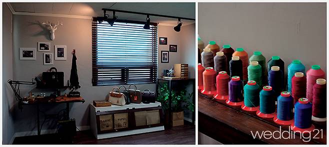 '더블유레더 가죽공방'은 남편 장원 씨의 영문 이름 이니셜을 따서 탄생한 가죽 공방 상호다. 현재 공방에서는 가죽공예 강좌를 진행하면서 가방, 시계줄, 지갑 등 손바느질로 한 땀 한 땀 제작한 제품 주문 또한 받고 있다.
