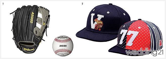 1 초보자도 부담 없이 사용할 수 있는 캐치볼용 야구공과 글러브. 가격미정. 윌슨2 동물과 별, 스트라이프 프린트를 얹어 위트를 더한 모자. 네이비 컬러를 바탕으로 해 커플 모자로 착용하기도 좋다. 4만5000원. 바이탈블루by햇츠온