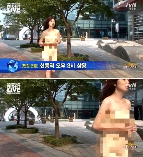 선릉역 알몸녀 패러디, 이성 잃은채 나체 활보女..모자이크 벗겨보니