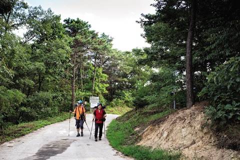청림농장 진입로는 곧 콘크리트길로 이어진다. 김포 한남정맥은 '해병대길'이나 다름없었다. 것고개 북쪽에 자리한 군부대를 우회하기 위해 한참 돌아야 하고, 이후에도 능선 곳곳에 군사방어진지가 들어서 있다. 정맥 등날 타고 난 도로에는 해병대 병사들이 작업에 열중하며 역시 정맥을 '점령'하고 있었다.