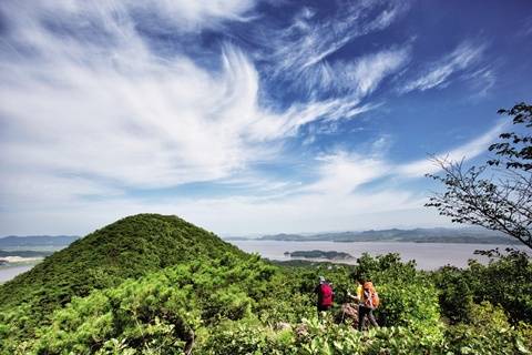 ↑ [월간산]태풍이 지나가자 새 세상이 열렸다. 한낮에는 뜨거운 햇살이 작열했다. 해질녘이 되자 온 세상이 맑은 기운이 넘쳤다. 문수산 정상에서 염하 건너 강화를 바라보고 있다. |